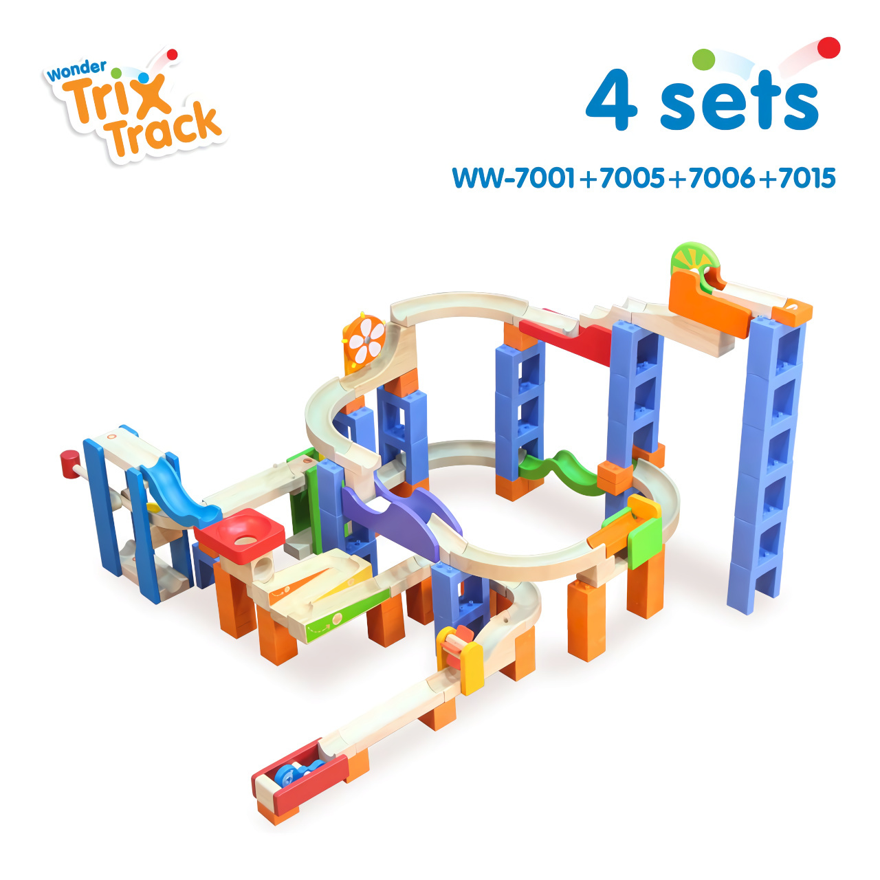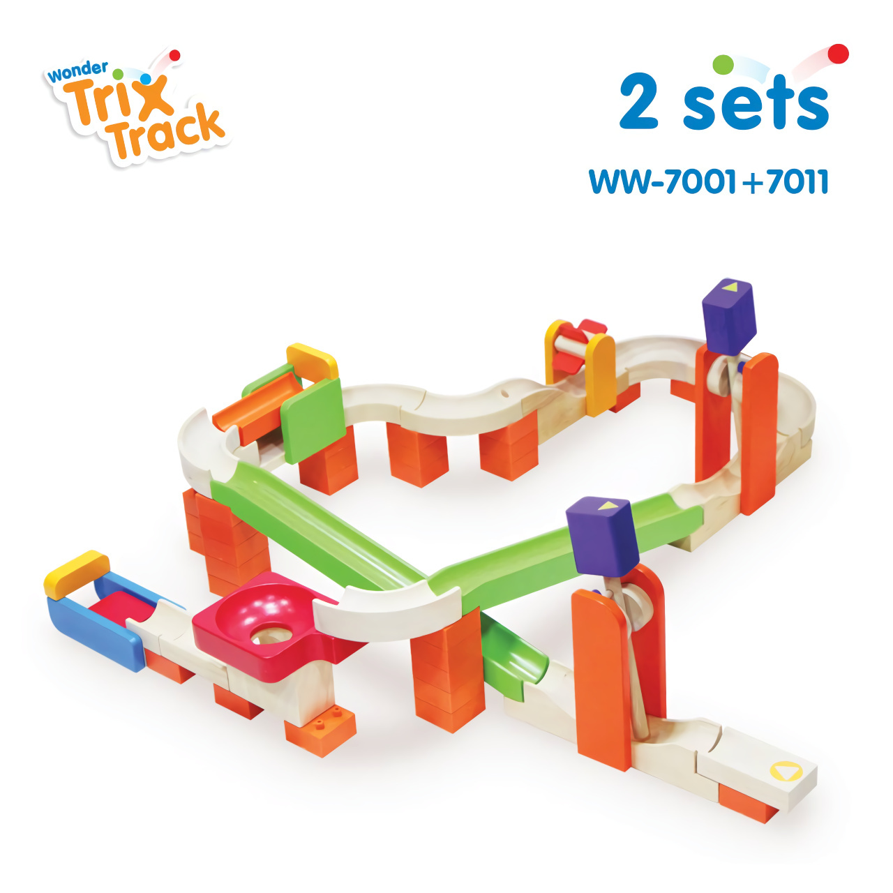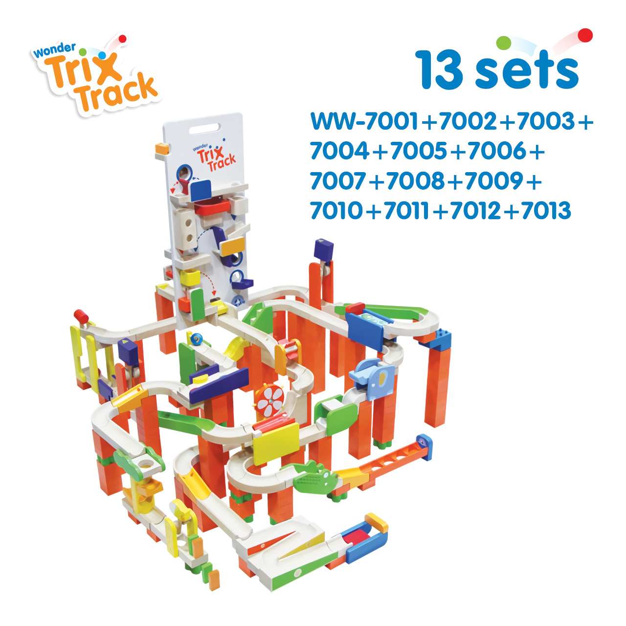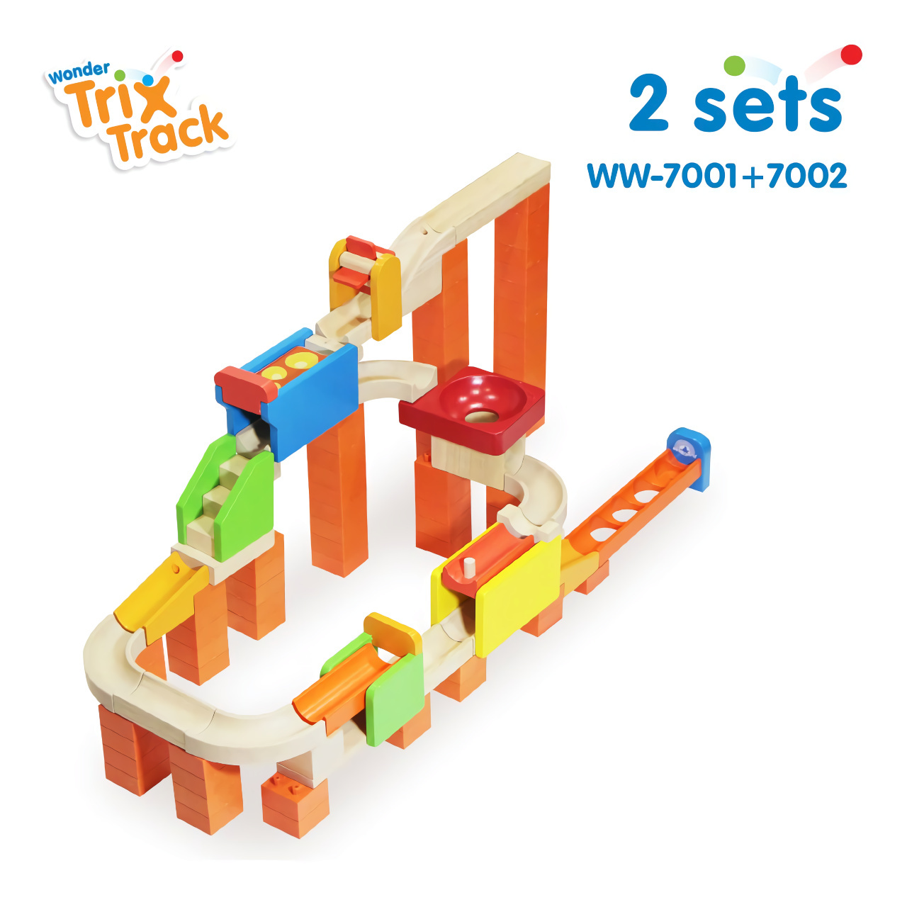 S kuličkovými dráhami ze série TRIX® od firmy Wonderworld si užijete spoustu skvělé zábavy. Díky své variabialitě, nápaditosti a propracovanému konceptu celé série TRIX® se jedná o velmi hodnotnou hračku, kterou ocení jak děti, tak dospělí hráči. Všechny kuličkové dráhy ze série TRIX® lze vzájemně kombinovat, a stále tak zvedat laťku kombinací a zábavy. Svou ohromnou variabilitou rozvíjí dětskou představivost, možnosti sestavení jsou téměř nekonečné. Sestavená dráha je vždy stabilní díky promyšlenému a jednoduchému systému spojování dílů. Základní stavební díly jsou vyrobeny z dřevoplastu, vlastní dráha pak převážně z masivního dřeva. Součásti nabízí kvalitní hladkou povrchovou úpravu a kombinaci atraktivních sytých barev s barvou přírodního dřeva. Stavebnice je spolu s obrázkovým návodem k sestavení dodávána v pestře potištěné kartonové krabici vybavené praktickým plastovým uchem k přenášení. Dráhy lze doplnit také drobným příslušenstvím, základními kostkami a ozdobnými kuličkami, které naleznete v naší nabídce.