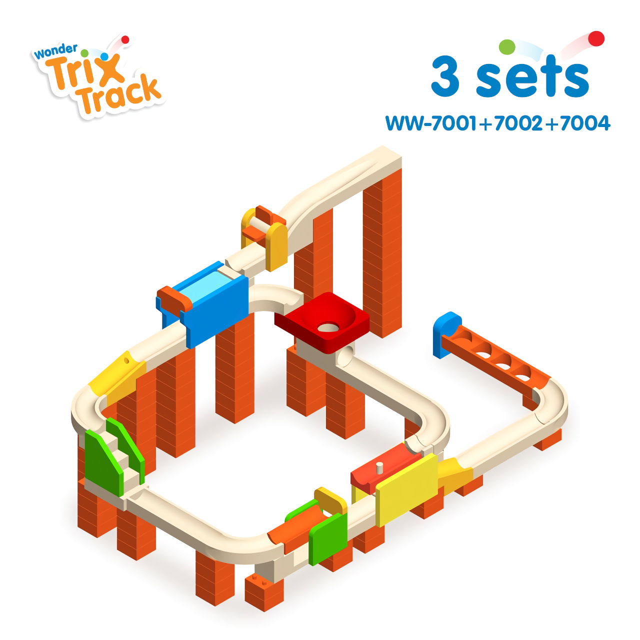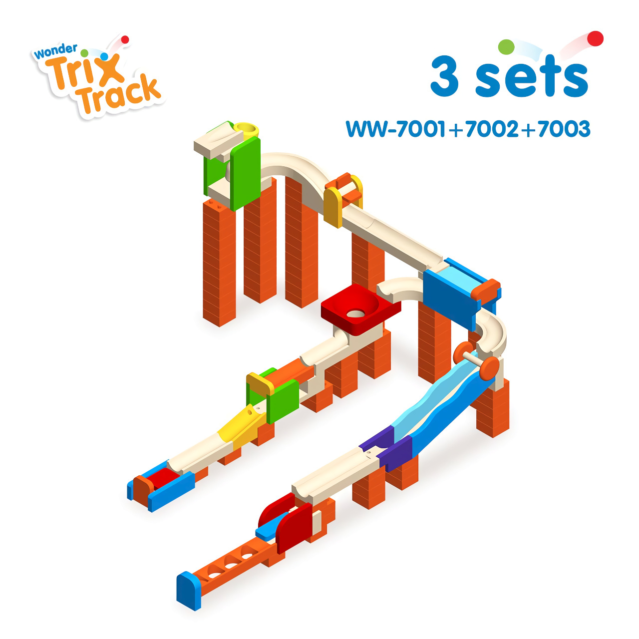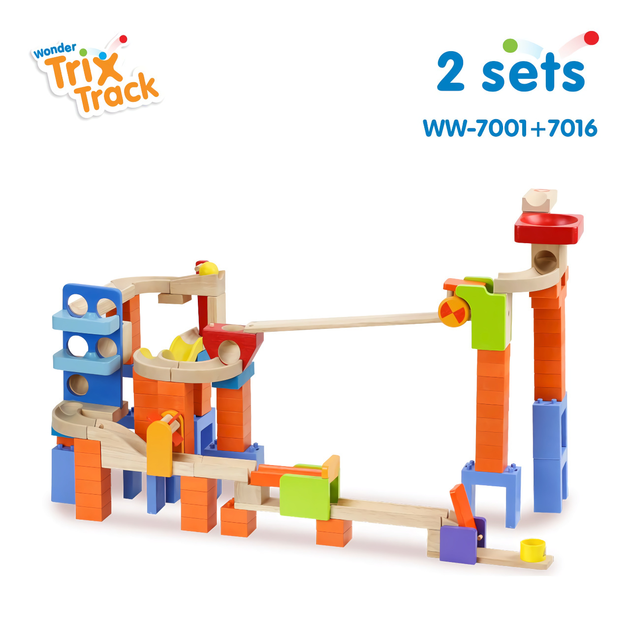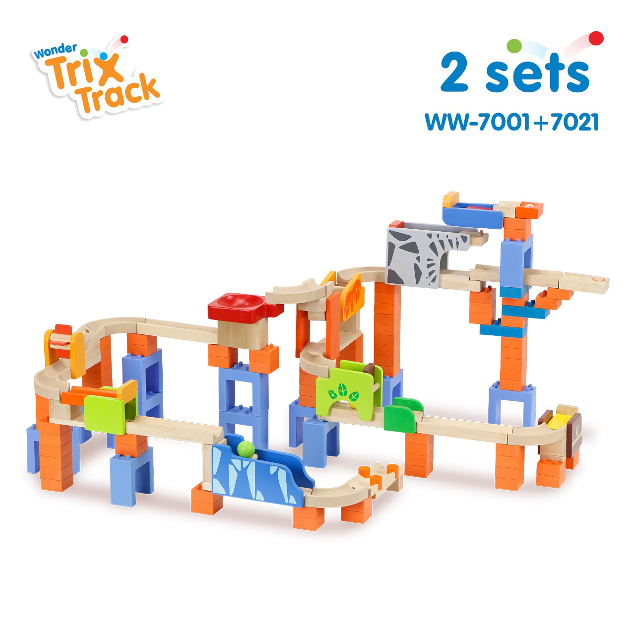 S kuličkovými dráhami ze série TRIX® od firmy Wonderworld si užijete spoustu skvělé zábavy. Díky své variabialitě, nápaditosti a propracovanému konceptu celé série TRIX® se jedná o velmi hodnotnou hračku, kterou ocení jak děti, tak dospělí hráči. Všechny kuličkové dráhy ze série TRIX® lze vzájemně kombinovat, a stále tak zvedat laťku kombinací a zábavy. Svou ohromnou variabilitou rozvíjí dětskou představivost, možnosti sestavení jsou téměř nekonečné. Sestavená dráha je vždy stabilní díky promyšlenému a jednoduchému systému spojování dílů. Základní stavební díly jsou vyrobeny z dřevoplastu, vlastní dráha pak převážně z masivního dřeva. Součásti nabízí kvalitní hladkou povrchovou úpravu a kombinaci atraktivních sytých barev s barvou přírodního dřeva. Stavebnice je spolu s obrázkovým návodem k sestavení dodávána v pestře potištěné kartonové krabici vybavené praktickým plastovým uchem k přenášení. Dráhy lze doplnit také drobným příslušenstvím, základními kostkami a ozdobnými kuličkami, které naleznete v naší nabídce.