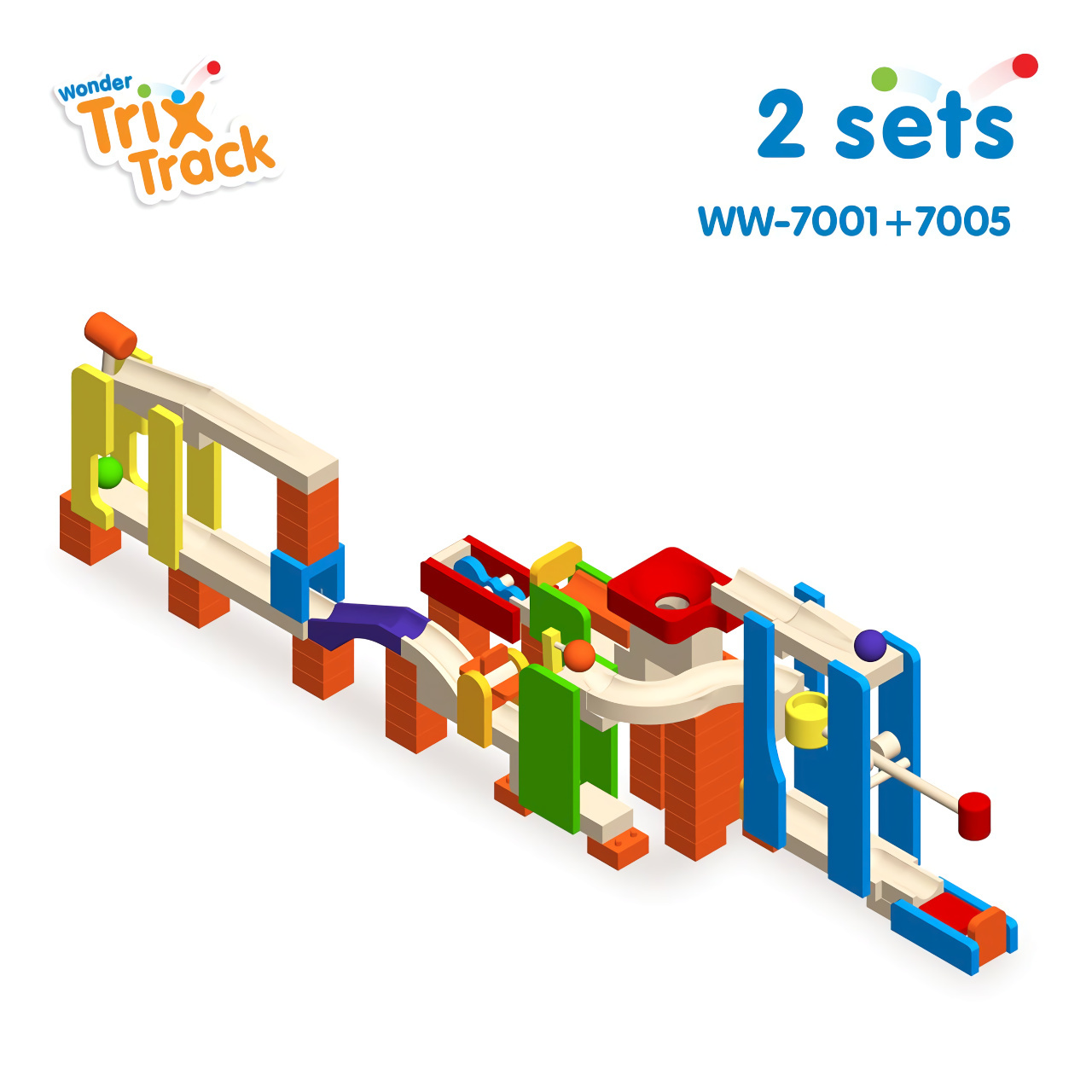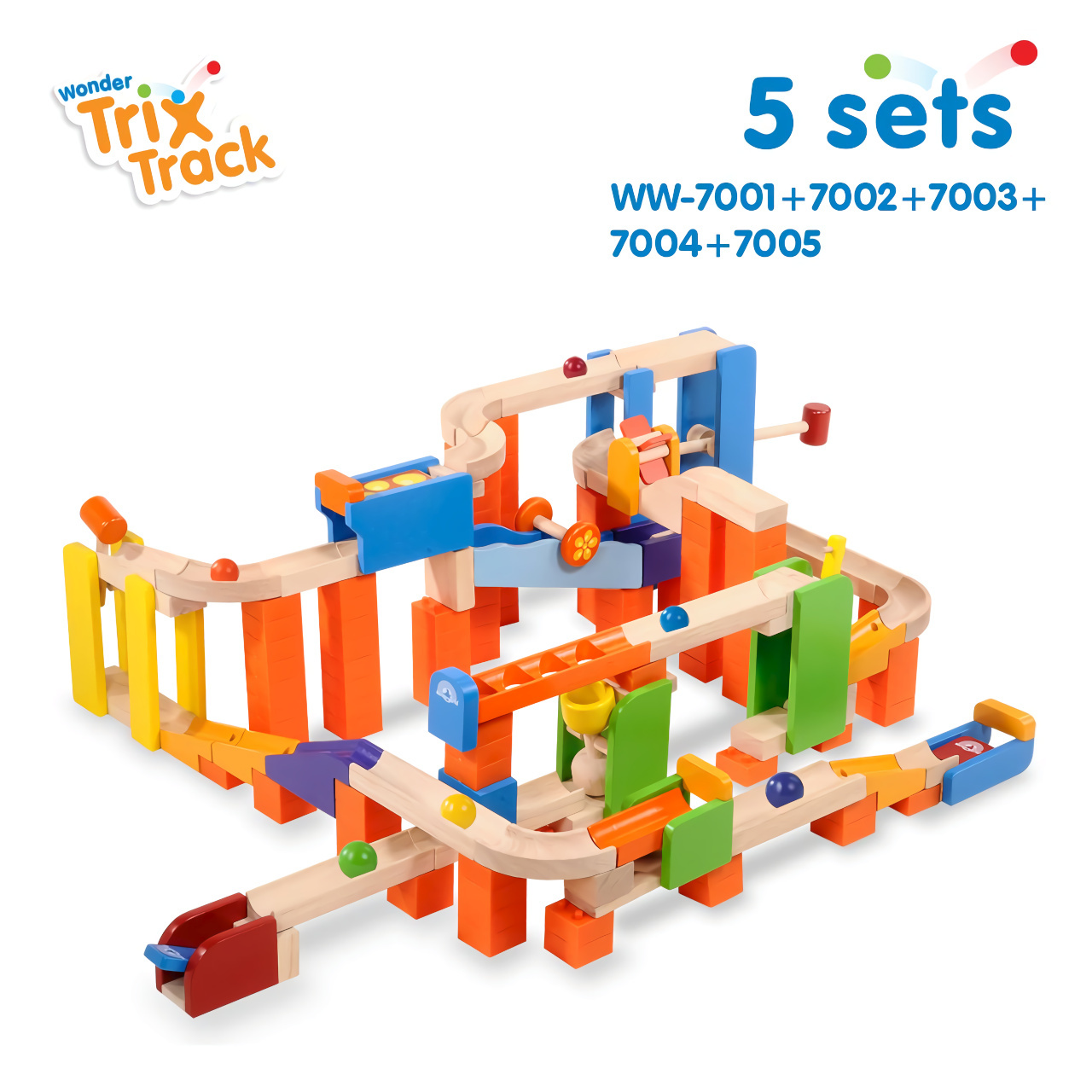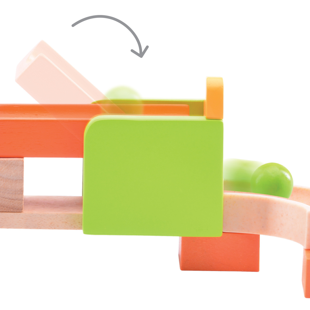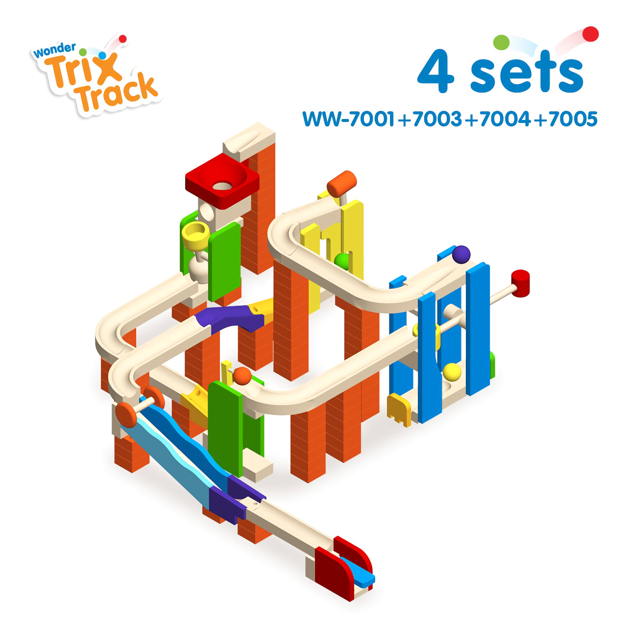 S kuličkovými dráhami ze série TRIX® od firmy Wonderworld si užijete spoustu skvělé zábavy. Díky své variabialitě, nápaditosti a propracovanému konceptu celé série TRIX® se jedná o velmi hodnotnou hračku, kterou ocení jak děti, tak dospělí hráči. Všechny kuličkové dráhy ze série TRIX® lze vzájemně kombinovat, a stále tak zvedat laťku kombinací a zábavy. Svou ohromnou variabilitou rozvíjí dětskou představivost, možnosti sestavení jsou téměř nekonečné. Sestavená dráha je vždy stabilní díky promyšlenému a jednoduchému systému spojování dílů. Základní stavební díly jsou vyrobeny z dřevoplastu, vlastní dráha pak převážně z masivního dřeva. Součásti nabízí kvalitní hladkou povrchovou úpravu a kombinaci atraktivních sytých barev s barvou přírodního dřeva. Stavebnice je spolu s obrázkovým návodem k sestavení dodávána v pestře potištěné kartonové krabici vybavené praktickým plastovým uchem k přenášení. Dráhy lze doplnit také drobným příslušenstvím, základními kostkami a ozdobnými kuličkami, které naleznete v naší nabídce.