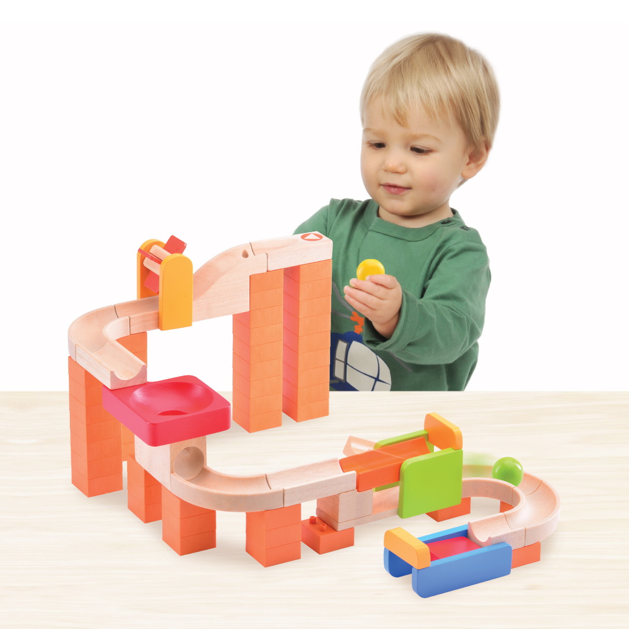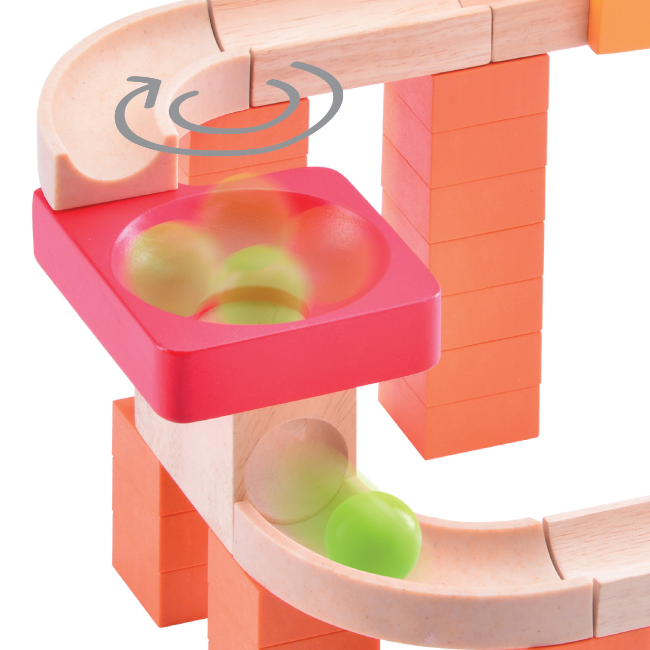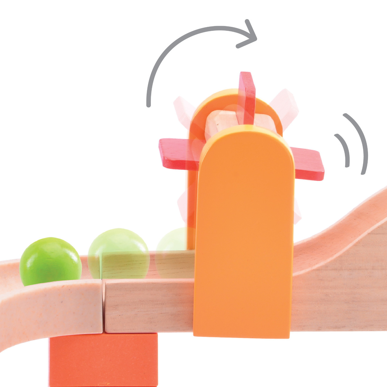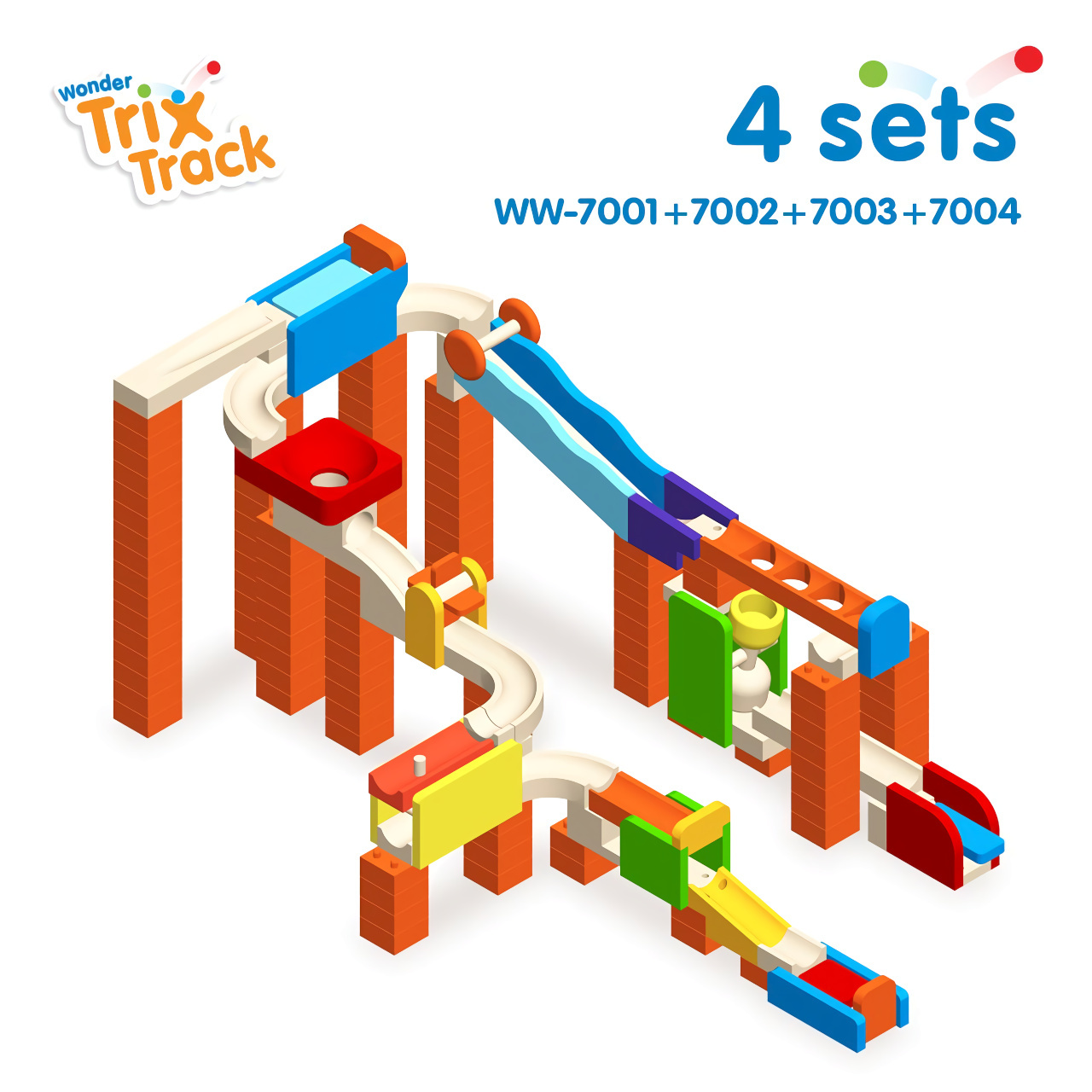 S kuličkovými dráhami ze série TRIX® od firmy Wonderworld si užijete spoustu skvělé zábavy. Díky své variabialitě, nápaditosti a propracovanému konceptu celé série TRIX® se jedná o velmi hodnotnou hračku, kterou ocení jak děti, tak dospělí hráči. Všechny kuličkové dráhy ze série TRIX® lze vzájemně kombinovat, a stále tak zvedat laťku kombinací a zábavy. Svou ohromnou variabilitou rozvíjí dětskou představivost, možnosti sestavení jsou téměř nekonečné. Sestavená dráha je vždy stabilní díky promyšlenému a jednoduchému systému spojování dílů. Základní stavební díly jsou vyrobeny z dřevoplastu, vlastní dráha pak převážně z masivního dřeva. Součásti nabízí kvalitní hladkou povrchovou úpravu a kombinaci atraktivních sytých barev s barvou přírodního dřeva. Stavebnice je spolu s obrázkovým návodem k sestavení dodávána v pestře potištěné kartonové krabici vybavené praktickým plastovým uchem k přenášení. Dráhy lze doplnit také drobným příslušenstvím, základními kostkami a ozdobnými kuličkami, které naleznete v naší nabídce.