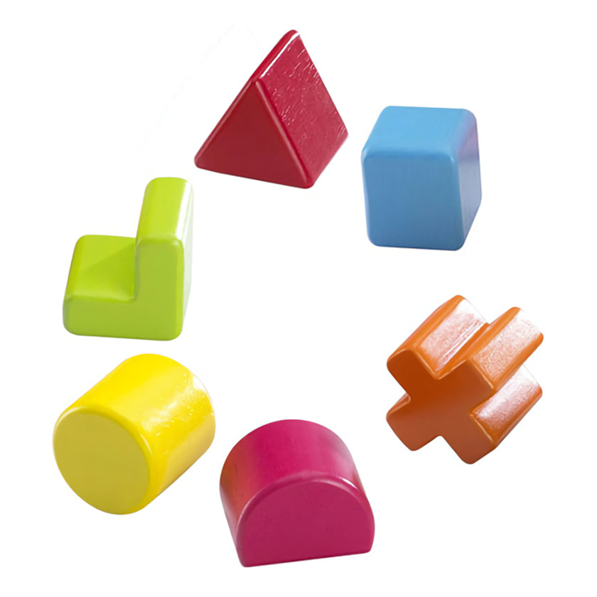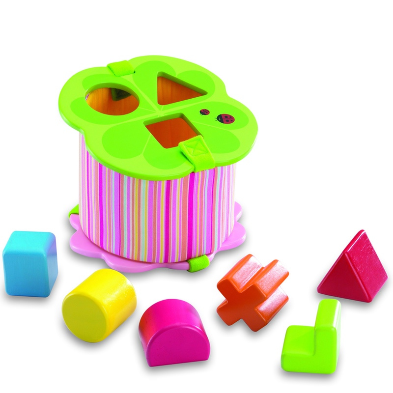 Vkládačka s víky ve tvaru čytřlístku má pevné textilní jádro, které je pomocí suchého zipu snadno oddělitelné a lze jej šetrně prát. Víka jsou mírně zešikmená a usnadňují dětem vkládání. Děti se pomocí hračky mohou učit rozeznávat základní tvary, rozvíjet přitom koordinaci rukou a zraku, jemnou motoriku a orientaci v prostoru. Dílky vkládačky jsou vyrobeny z odolného masivního dřeva. Upoutání dětské pozornosti přispívají vybrané pestré barvy.